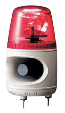 回転灯とアラームを一体化した警報装置、小型ながら最大105dBの大音量で、内蔵ボリュームで無段階に調節できます。