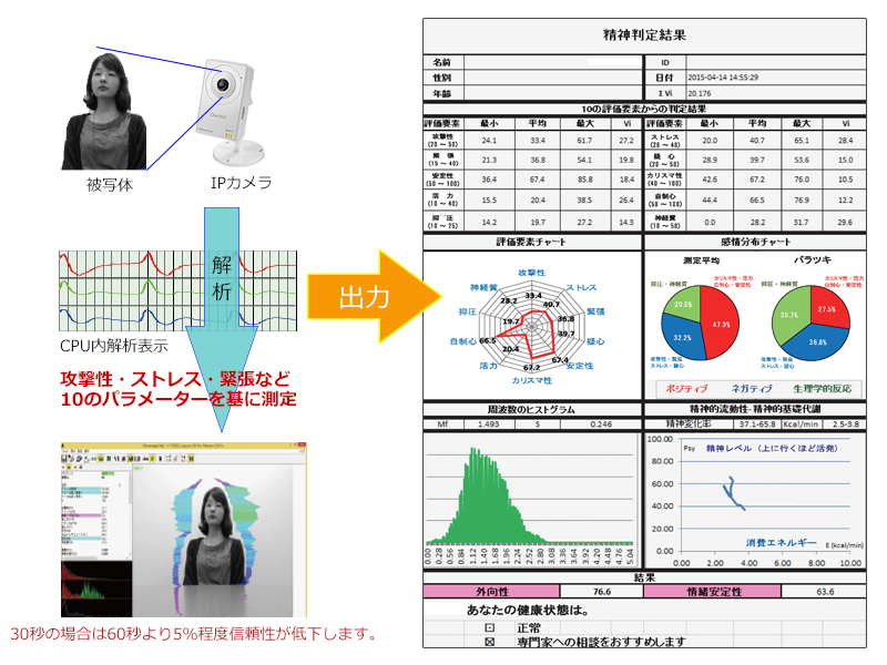 - わずか一分間の測定により精神状態の自動判定が可能